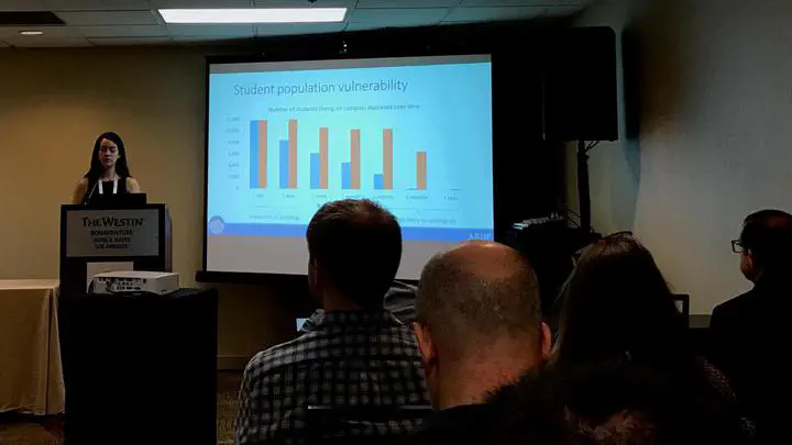 In the aftermath of previous moderate to large earthquakes (e.g. Loma Prieta 1989, Northridge 1994, and Christchurch 2011), nearby university campuses (e.g. Stanford, California State University, and University of Canterbury) have experienced widespread building damage, disruption of lecture and research, and reduction of undergraduate and graduate attendance. Other potential consequences of an earthquake could include life-safety issues and a loss of university reputation. While the value of ensuring campus-wide resilience in the face of earthquakes is apparent, the strategy to achieve measurable improved performance can be difficult to develop and quantify. This paper presents a methodology for estimating disruption and recovery of space on a university campus based on the REDi downtime assessment methodology (founded upon FEMA P-58). This is used to predict downtime for individual buildings due to building repairs and delays to the initiation of repairs (i.e. impeding factors). Hundreds of earthquake scenarios were considered to impact an example campus, and the related results are presented. Particular attention is paid to metrics of primary interest to university campuses, including restoration of different occupancy space over time and displacement of student populations.